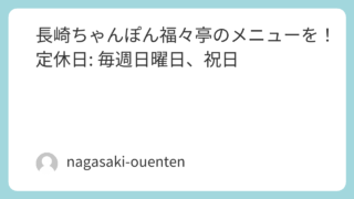 長崎ちゃんぽん福々亭のメニューを!定休日: 毎週日曜日、祝日